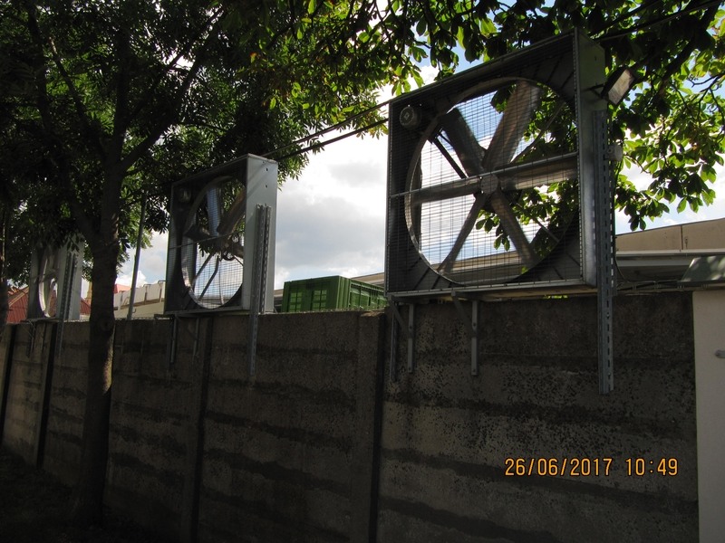 c. Větrání čekajících kamionů s kuřaty.